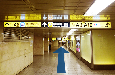 ①銀座線・半蔵門線「三越前駅」A10方面/JR・新日本橋駅方面へお進みください