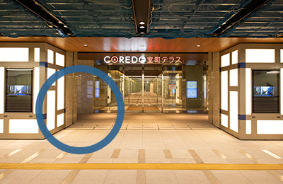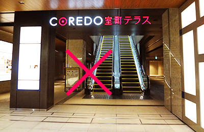 ②COREDO室町テラス1つ目の入り口を通り過ぎます(地上へ出るエスカレーターのため、こちらは使用しないでください)