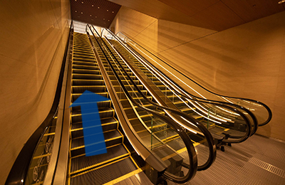 ④まっすく進むと奥にエスカレーターが見えます(左手に郵便局があります)